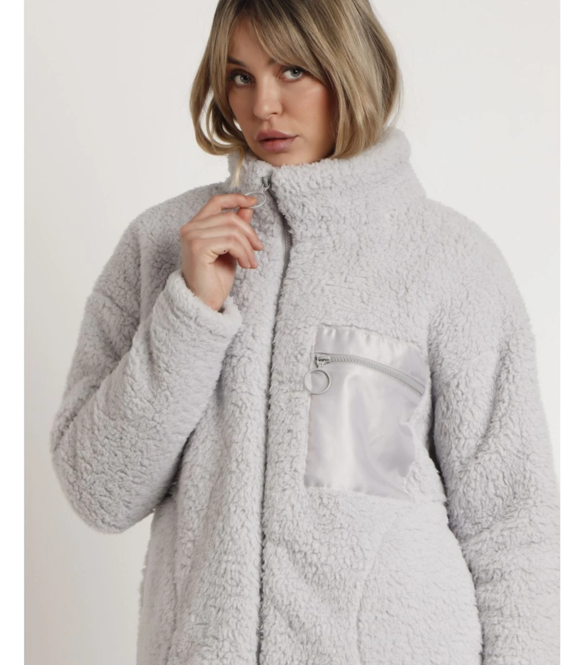 Bata de manga larga Admas Home Calentita Soft, de tejido borreguito muy cálido en color gris perla.