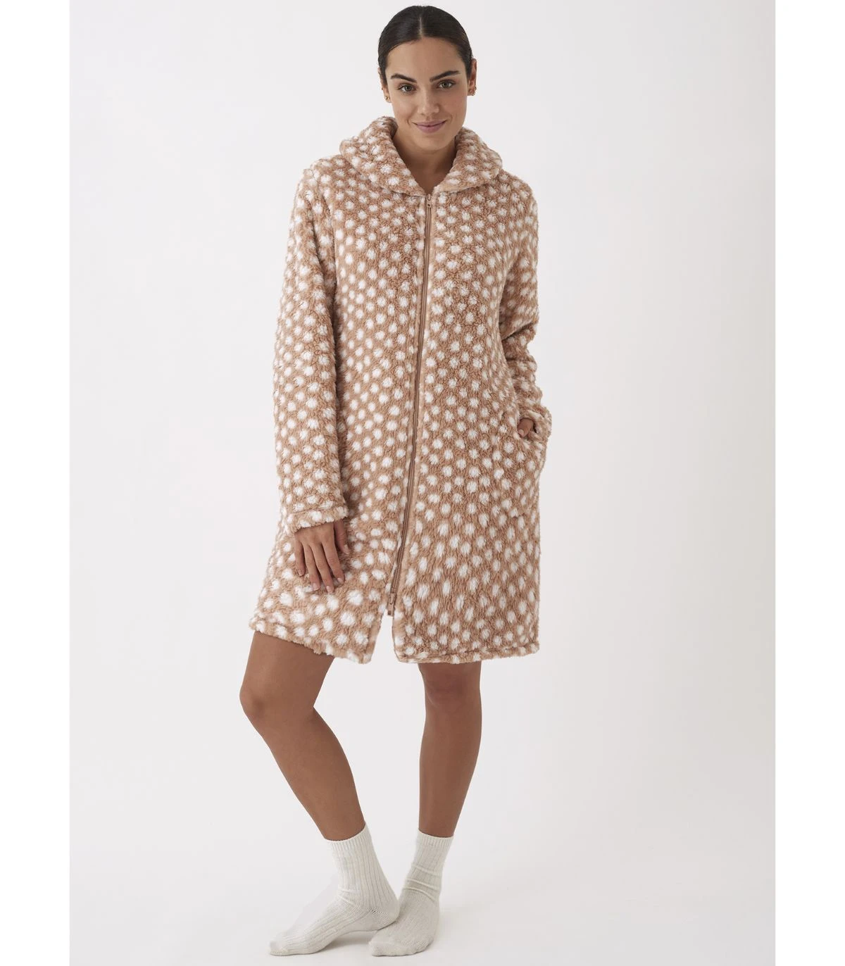 Esta bata de la marca Promise está confeccionada en un suave y grueso tejido de borreguito.